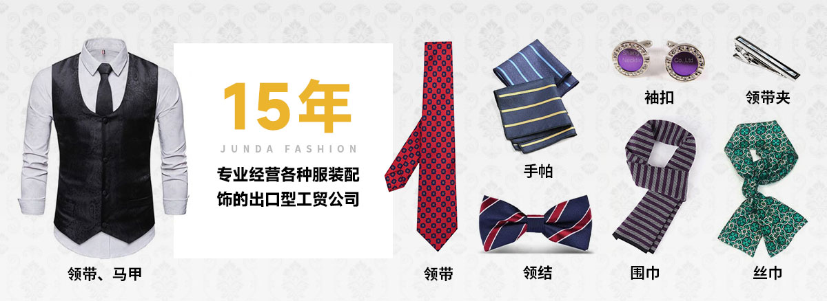 上饒市駿達服飾有限公司是一家專業(yè)經營各種服裝配飾的出口型工貿公司,公司多年來致力各種男女服裝國際流行配飾的開發(fā)和生產,主要產品為領帶、領結、絲巾、圍巾、手帕、馬甲、背心、箱包皮具、領帶夾、袖扣等,有豐富的內外銷經驗及廣泛的國內外銷售渠道,生產基地管理嚴格,質量過硬,并有一批生產加工企業(yè)長期合作